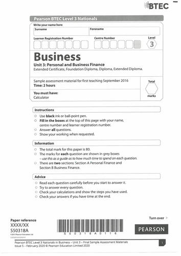 Business studies btec level 3 past papers. Lydon IGCSE and Level. Question papers mark schemes and examiner reports for the most recent exam sessions within the last 9 months can be accessed only by registered centres. This exam-style and exam-standard practice paper for Unit 3 Personal and Business Finance comes with a full mark scheme and is ideal for assessing the progress of your BTEC Business National students before they take the real Unit 3 exam.