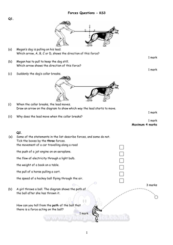 Ks3 Forces Revision Questions And Marksheme Teaching Resources