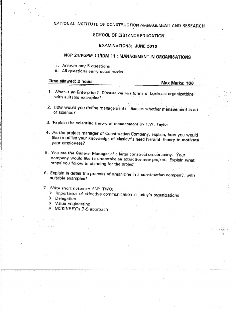 Nicmar National Institute Of Construction Management And Research School Of Distance Education Pune Pdf Free Download